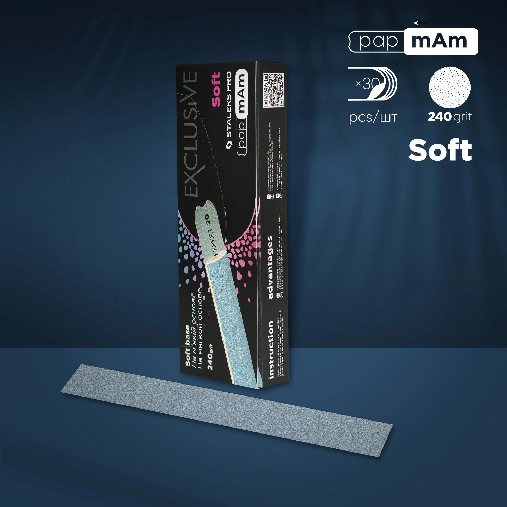 Staleks Pro Limas desechables blandas «papmam» 240 Grit para una base recta EXCLUSIVE (30 pcs)